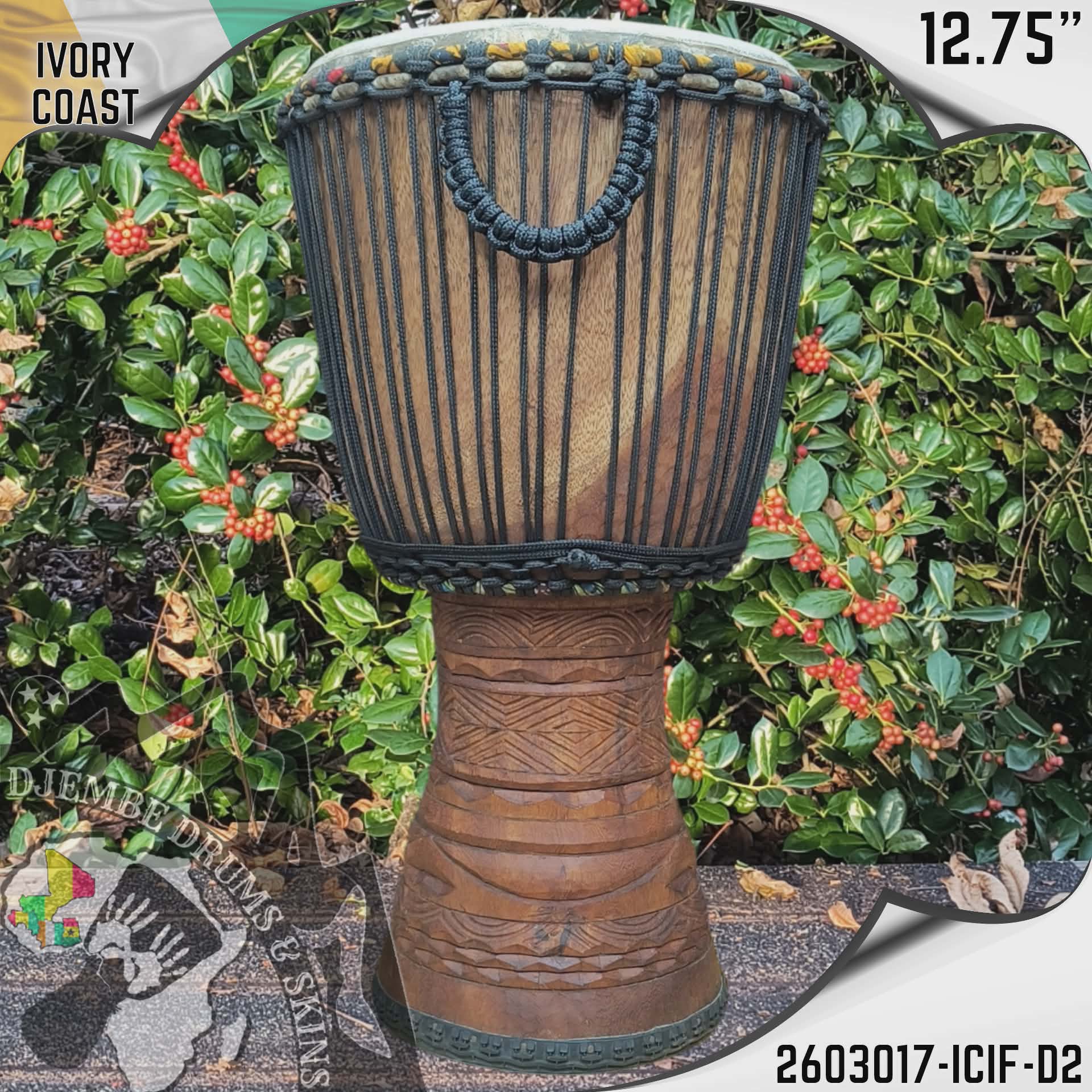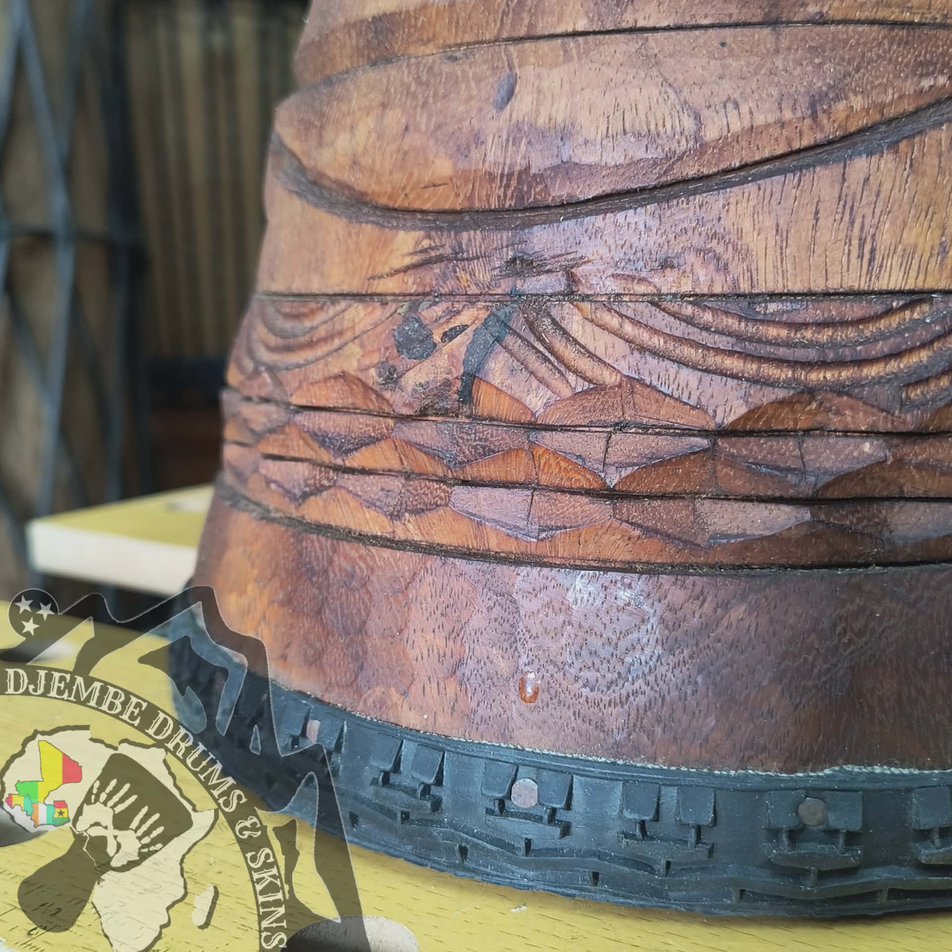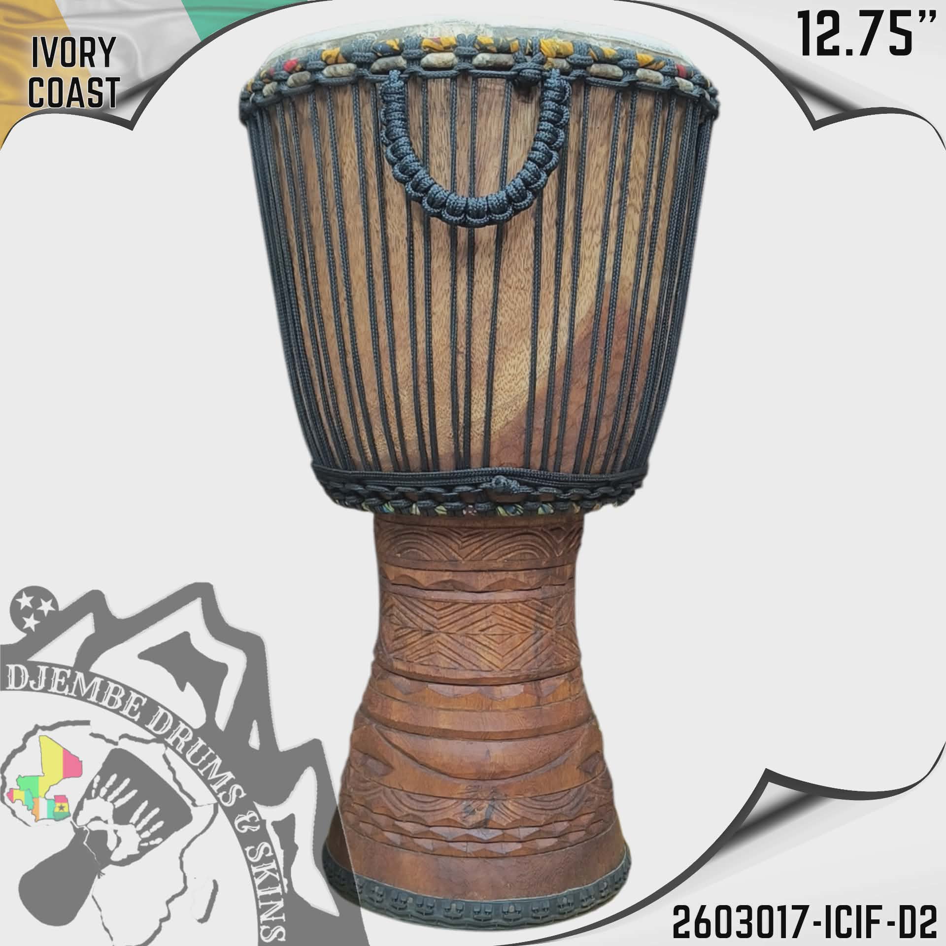 - These Djembe Shells like the Ivory Coast Dunun are finished with the very distinct, Traditional Ivory Coast Chip Pattern, instead of the sanded smooth texture that look lathe turned.
