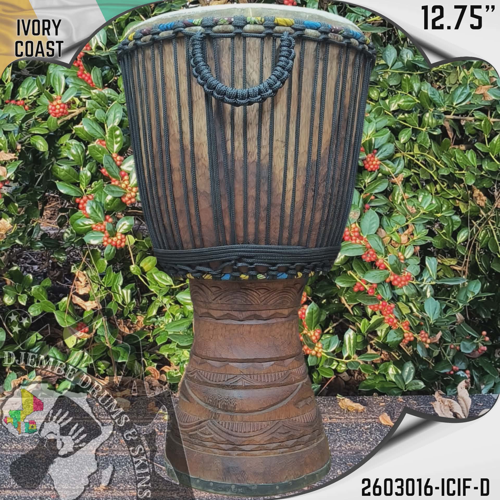 - These Djembe Shells like the Ivory Coast Dunun are finished with the very distinct, Traditional Ivory Coast Chip Pattern, instead of the sanded smooth texture that look lathe turned.