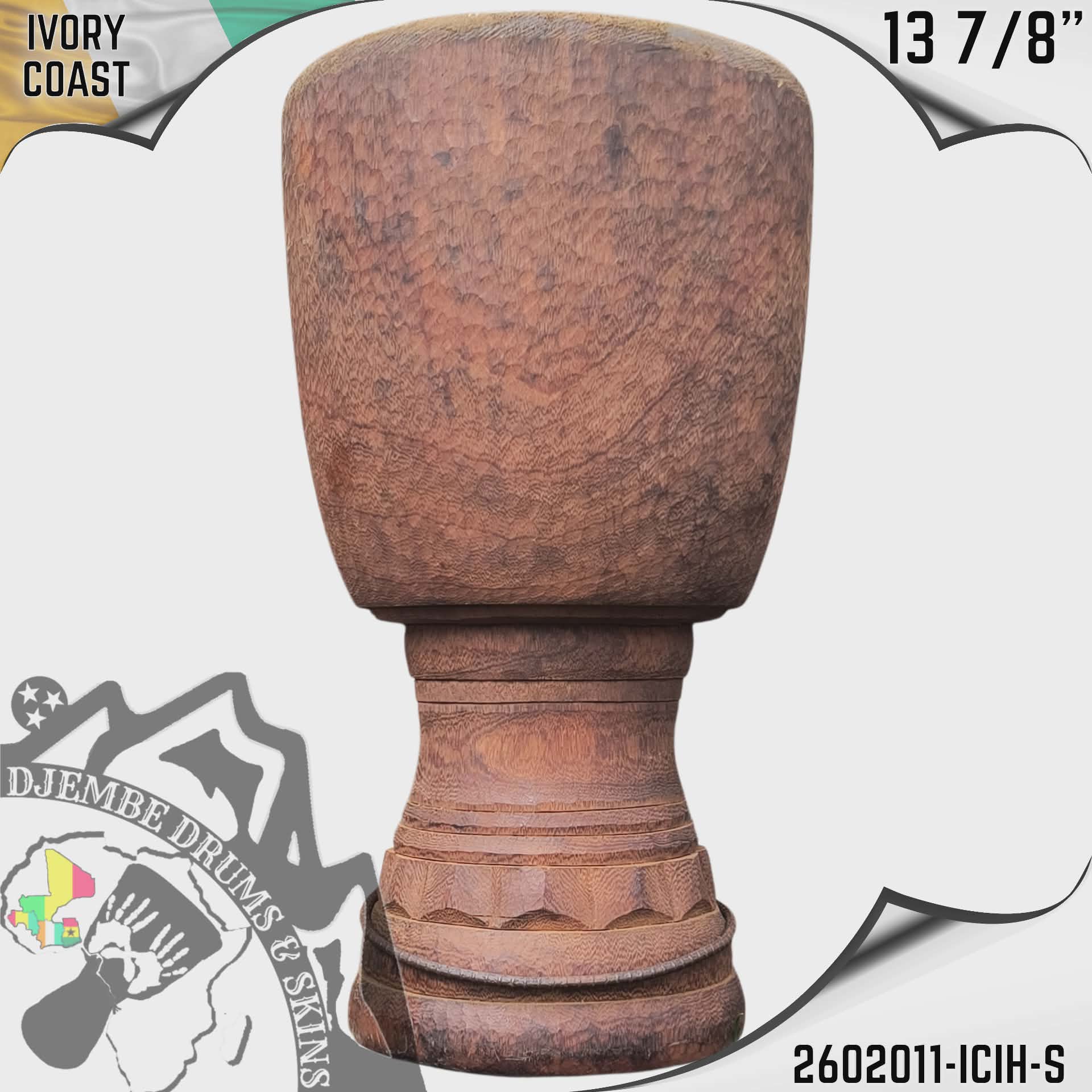 Premium Djembe Shell hand carved out of a single log of Iroko Wood, finished with the traditional Ivory Coast chip pattern rather than the smooth lathe turned look.